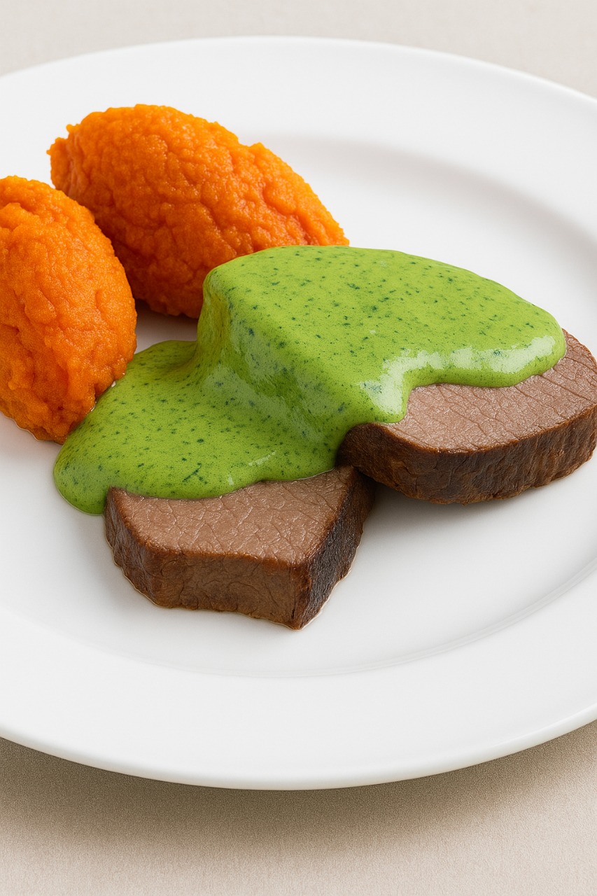 Cuadril, calabaza, acelga, cebolla, leche descremada, almidón de maíz.