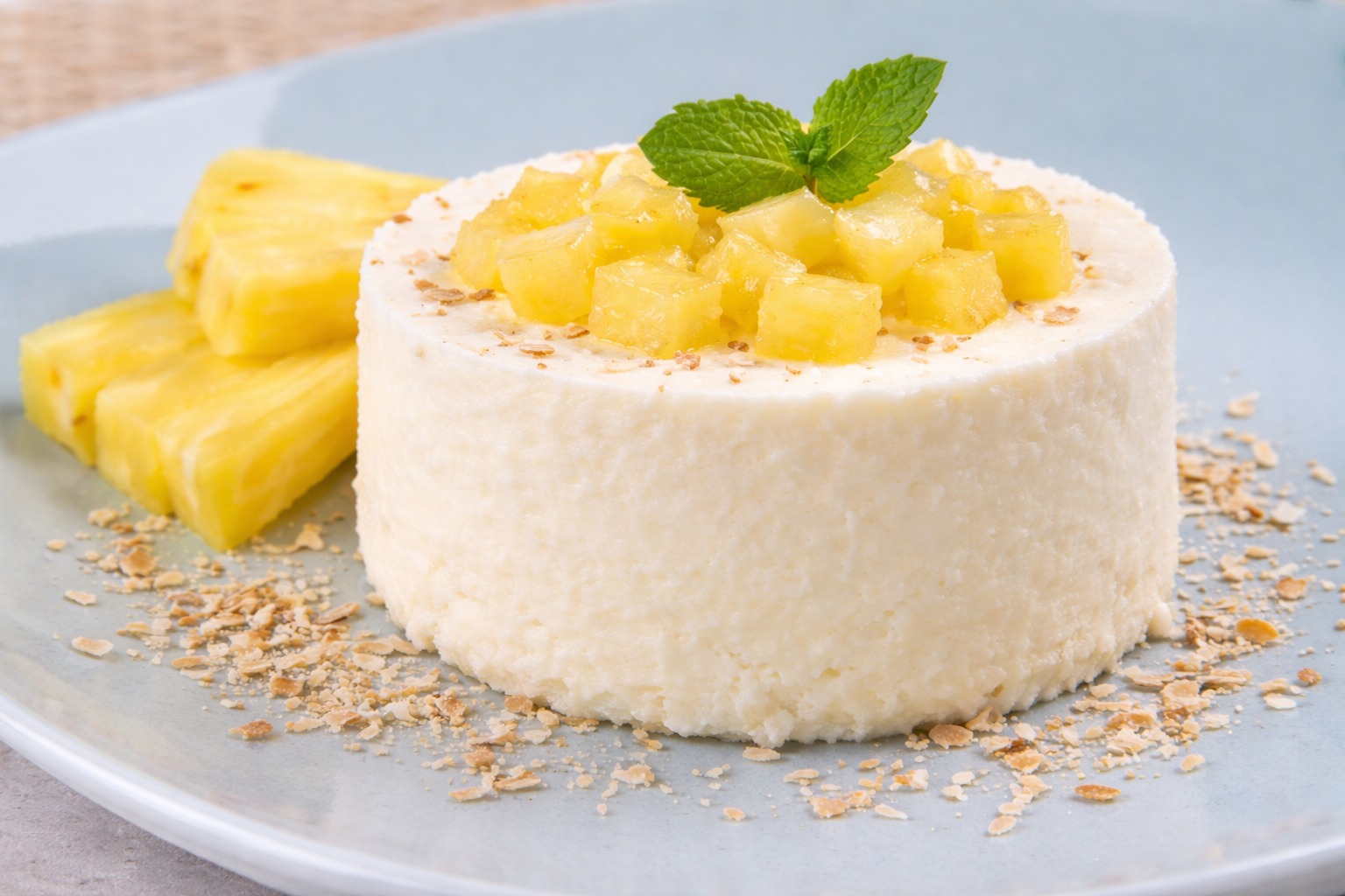 Queso blanco light, claras de huevo, ananá, gelatina sin sabor, edulcorante.